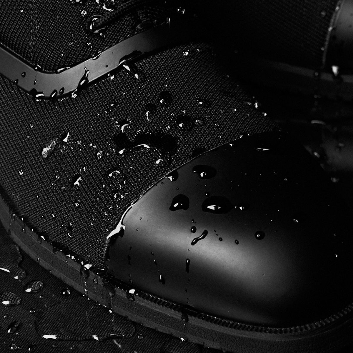 Water-repellent knit material is used for the upper part. The breathability and quick-drying properties unique to the knit material ensure comfort on your feet at all times.