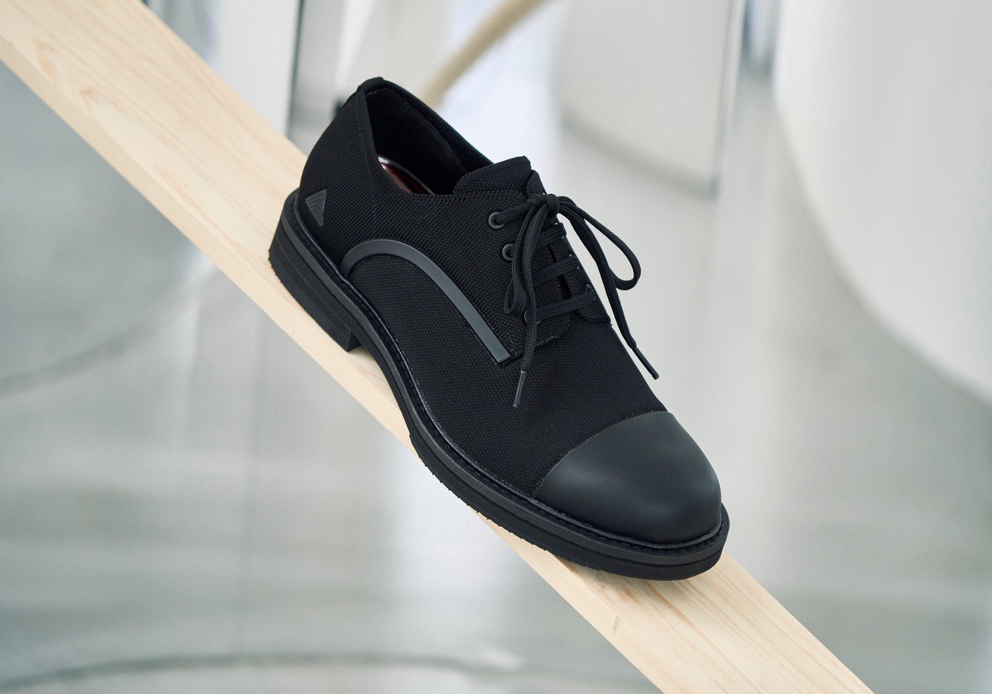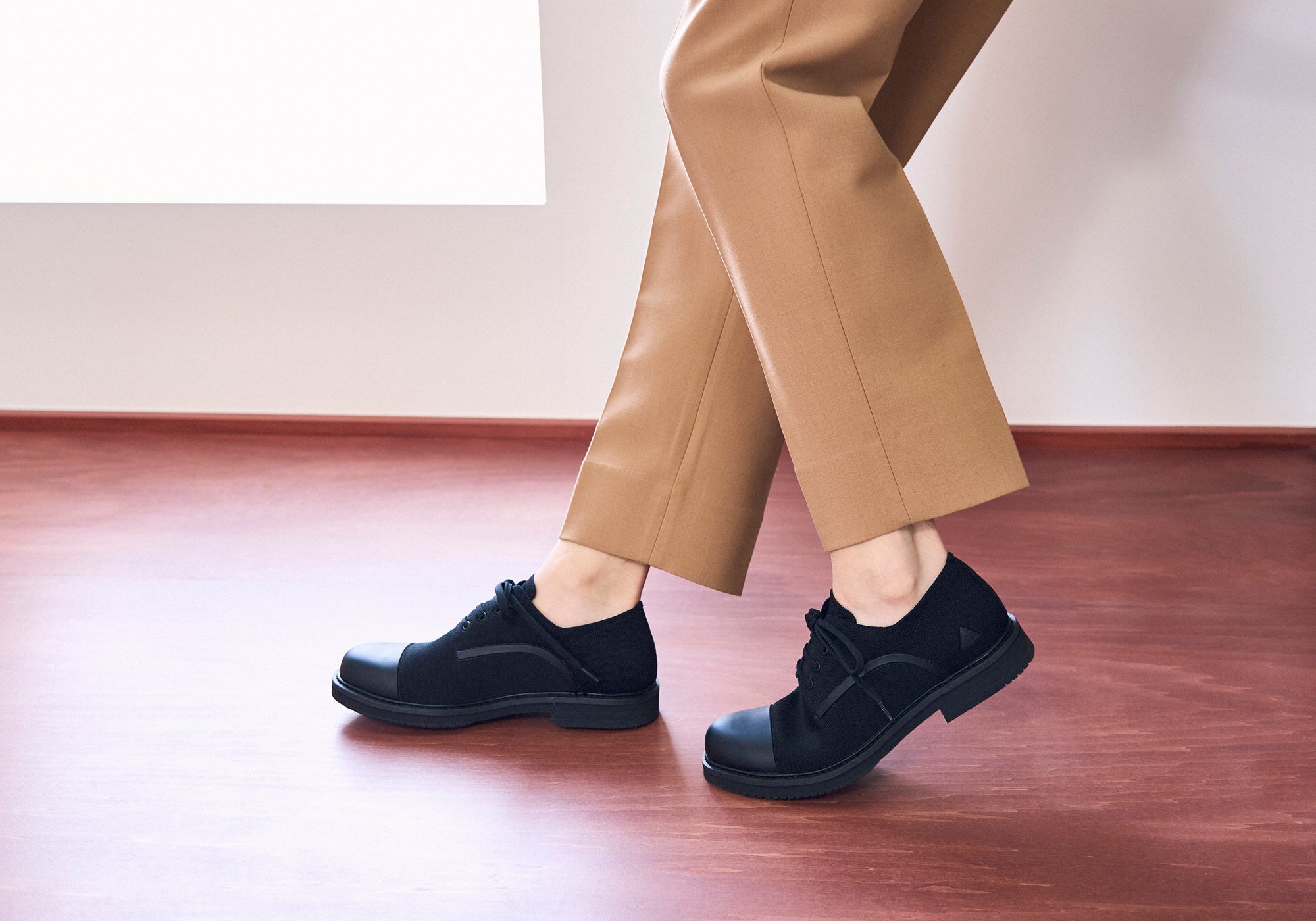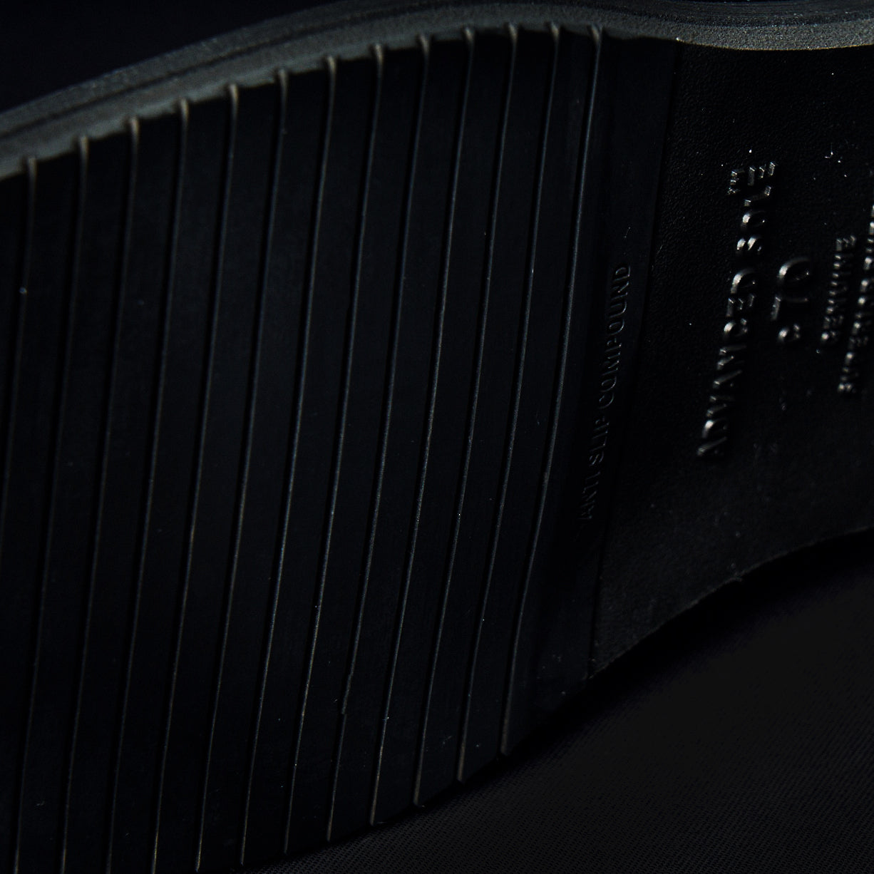 ミリタリーのサービスシューズをベースにデザイン。トゥに丸みとボリュームを持たせたラスト(木型)を採用した、カジュアルとフォーマルのバランスの良さが魅力の一足です。アウトソールデザインは、ミッドソールにEVAフォームシートを追加することで厚みを持たせクッション性や安定性を向上させているので、他のシリーズより重量感があります。つま先のトゥキャップやアイレット、各接合部分に共通の樹脂パーツを使用し、撥水性を高めながらモダンな印象にまとめています。